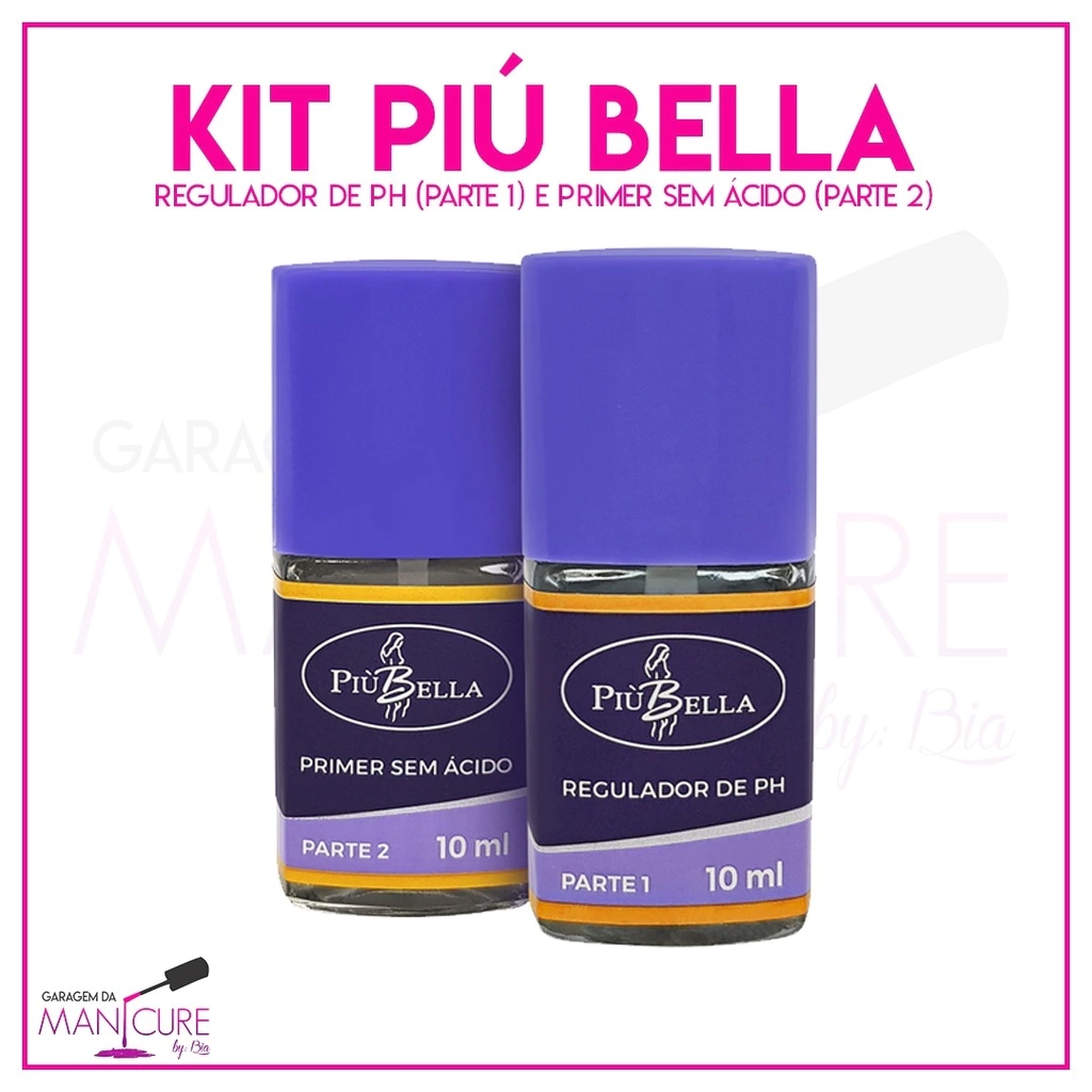 Contém um Pimer sem Ácido 10ml Più Bella e Um Regulador de PH Più Bella 10ml